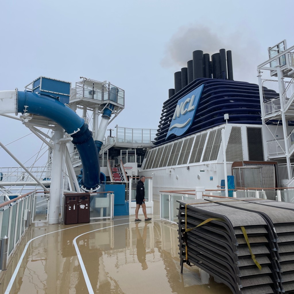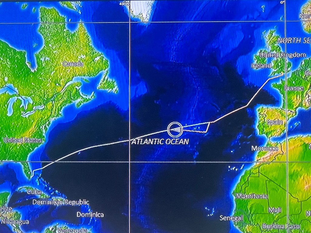 The weather has not been the best, but as we progress toward USA, the outside temperatures are getting higher. We were in fog for at least one whole day where every 2 minutes there was a 5 second blast on the horn – fog signal. Once the fog cleared the drizzle started and the swell got bigger and bigger. 10-meter seas, 40 knot winds, she got a bit rocky there for a while, about 3 days at its worst. The captain gives an update every morning at 10am and this is normal for the North Atlantic Ocean. We knew the weather was coming up when we saw the vomit bags being put out at the stair wells at every level.
