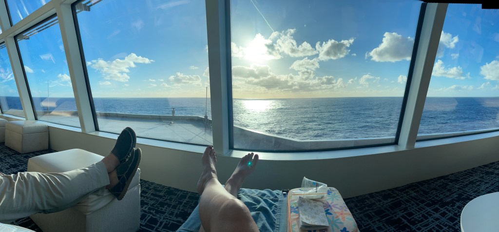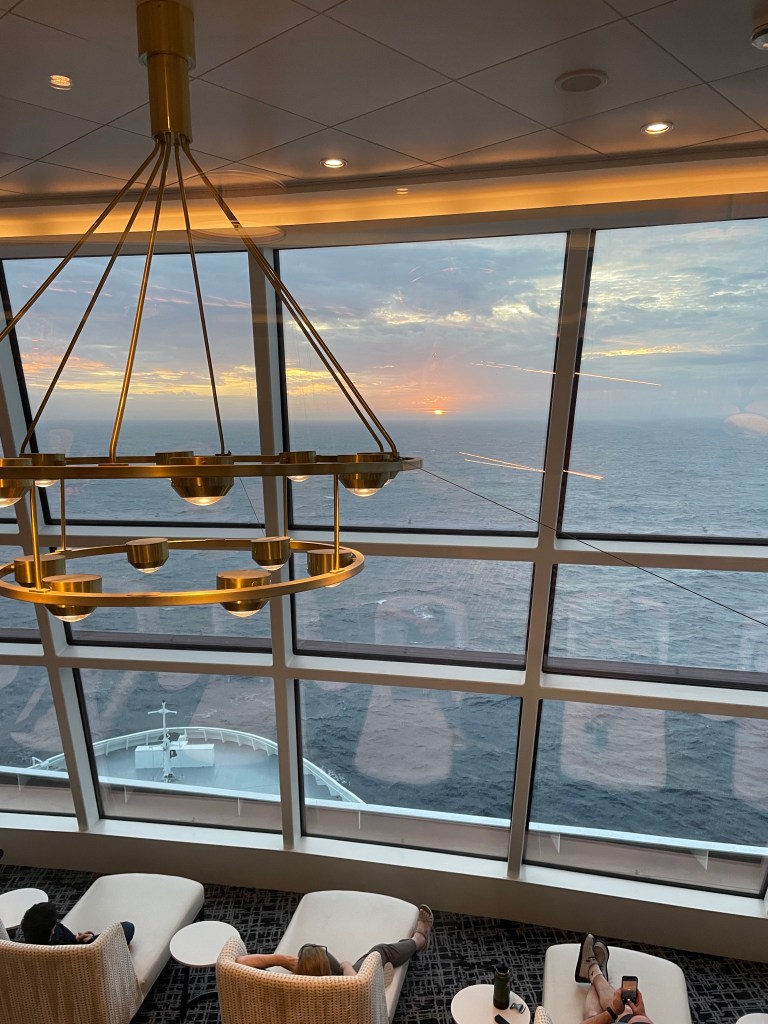 We feel we are lucky to have chosen this transatlantic crossing as our first cruise. It is 11 days long and we will not hit another port until we get to Miami. That is a lot of days to be at sea, nothing to do but be on the boat. It is a re-location voyage; this ship goes on to cruise the Caribbean for the season. No ports? Perfect for us as we feel that it has really given us a chance to get to know the boat. If this had only been 5 days for example, we would not have discovered all the hidden gems that we have done. We have walked and explored every corner of this ship. There is so much to see and do. We have loved every minute.