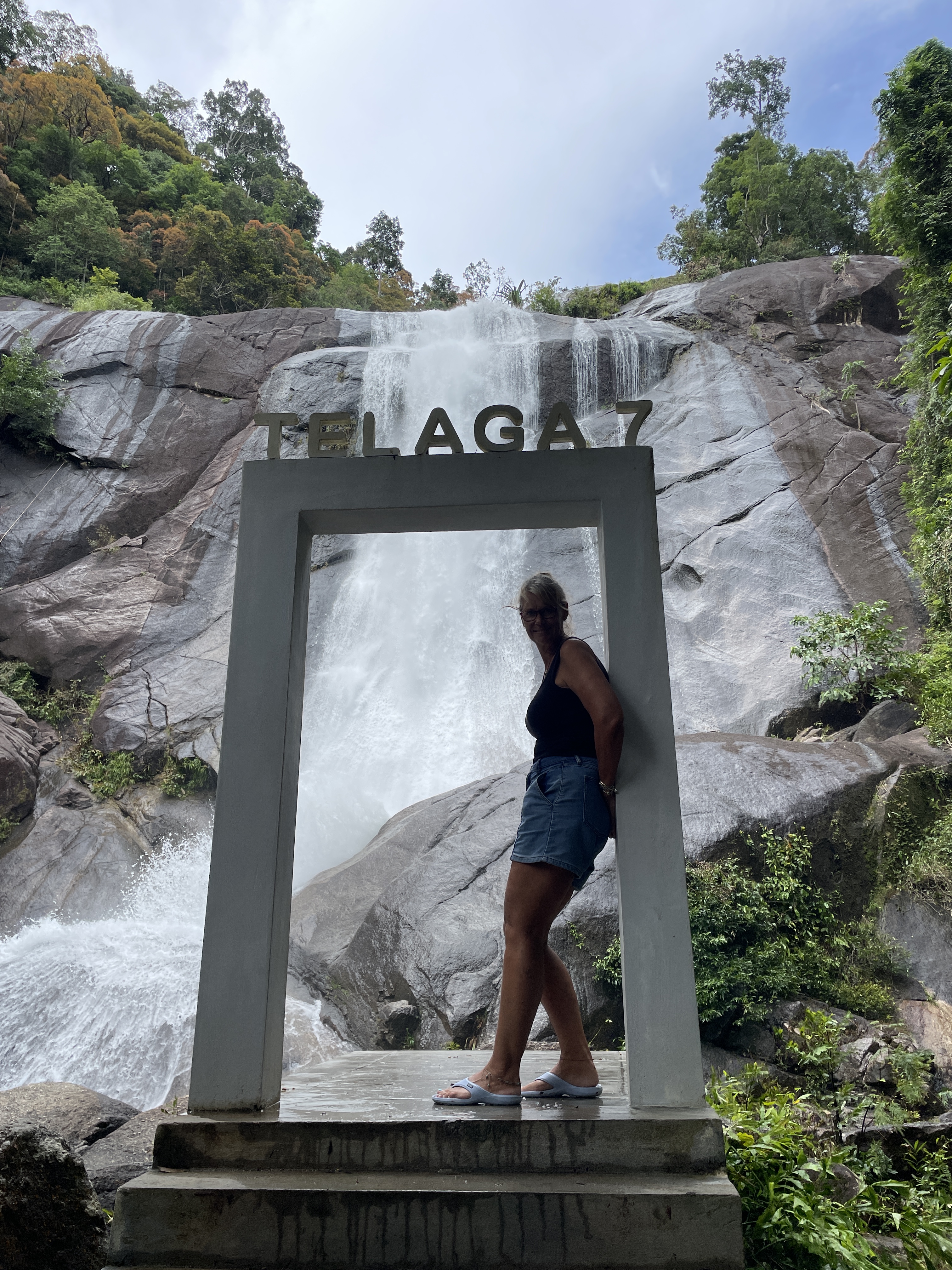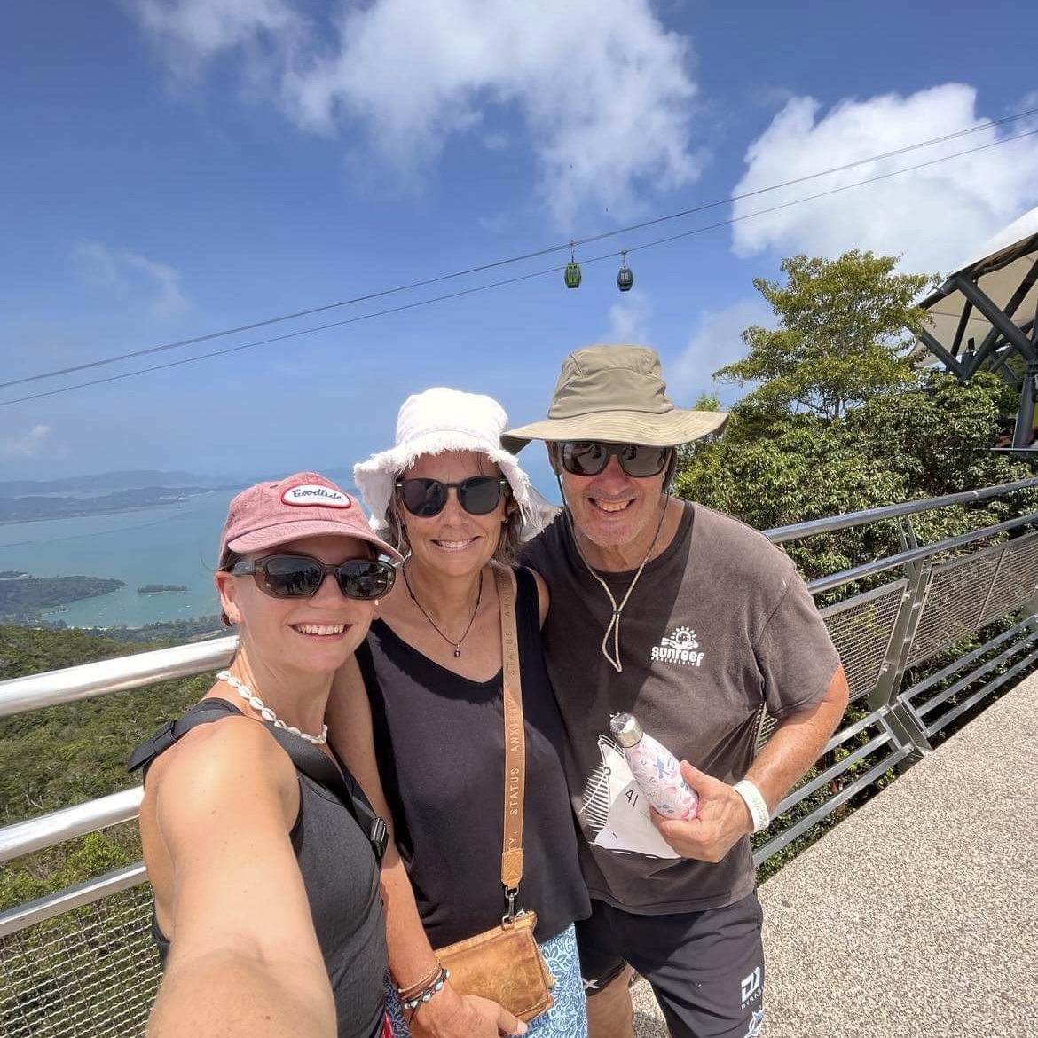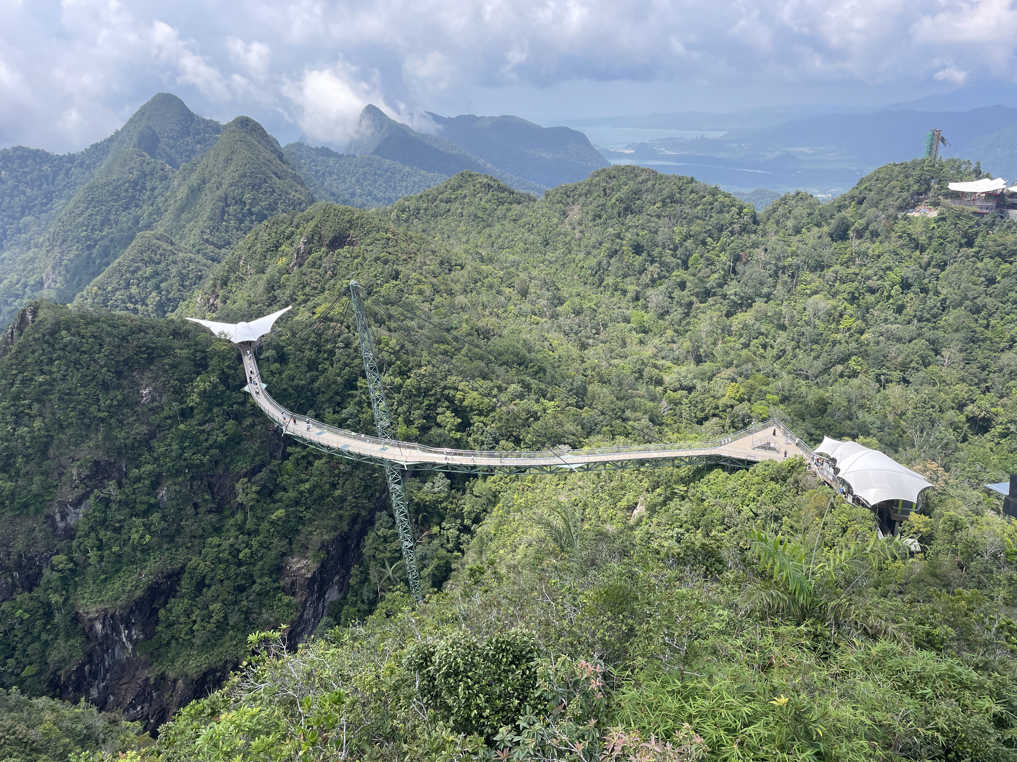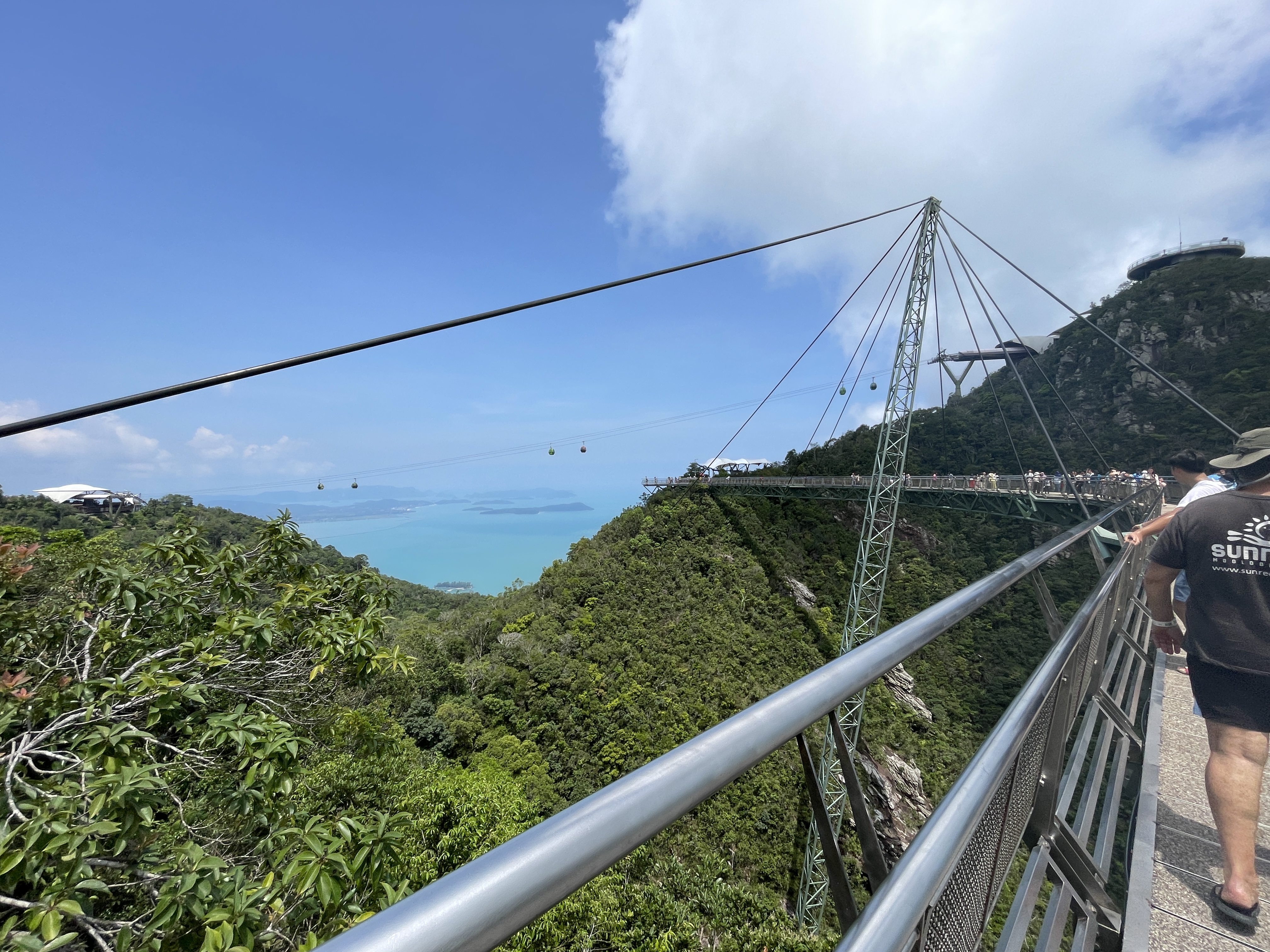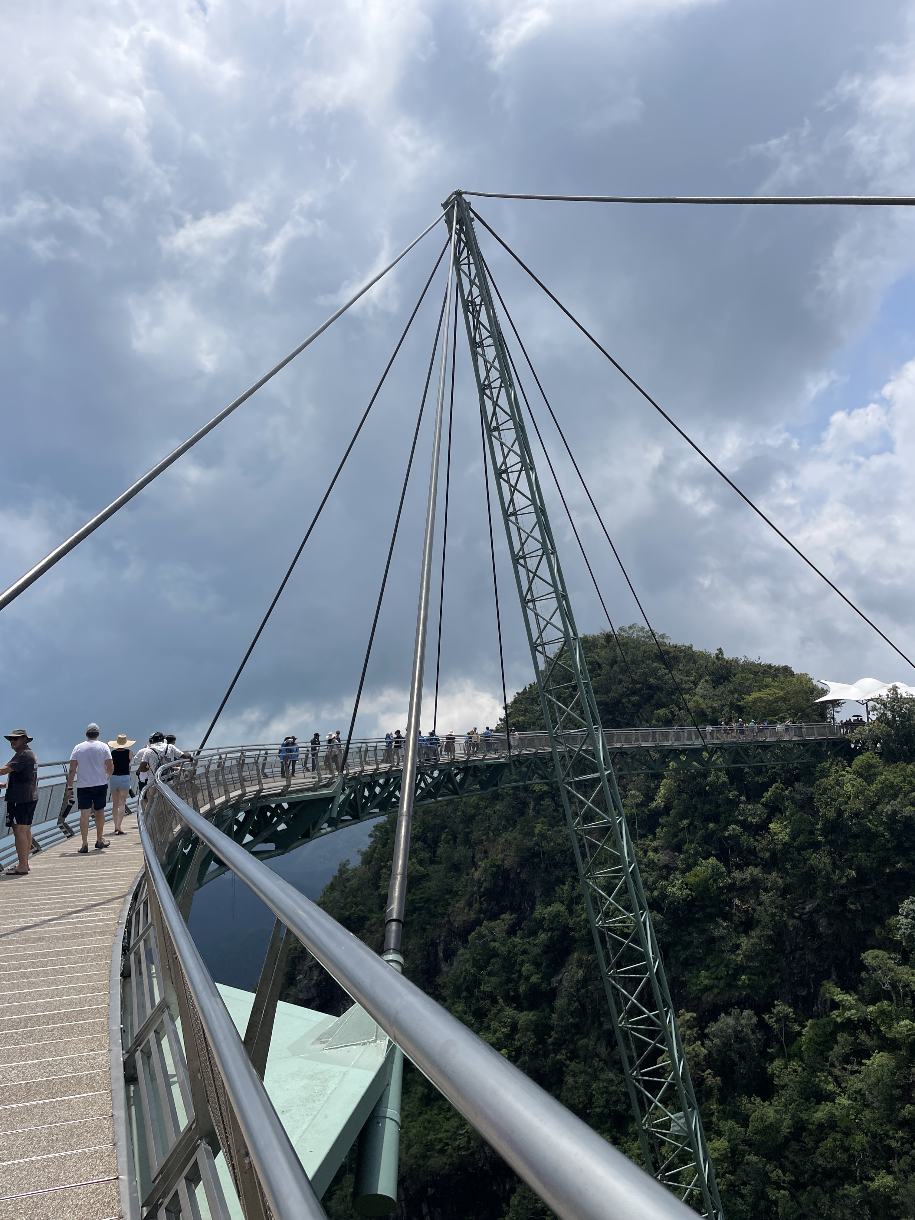 This time in Langkawi we get to go up the SkyCab gondola to the SkyBridge. Our friend from NZ had called into Langkawi on her way to Thailand so this was the perfect opportunity to play tourist. If you ever get to Langkawi this is a must see! At 125 metres, the SkyBridge is the longest free span and curved bridge in the world. The bridge deck is 600 metres above sea level and as we are on a small island, that makes it a long way straight up! It is an incredible engineering feat and well worth the visit to see it up close. We had the best day for it too. The bridge is closed if the wind is too high and often the bridge and the mountain peaks around it are shrouded in cloud, so we timed it perfectly.