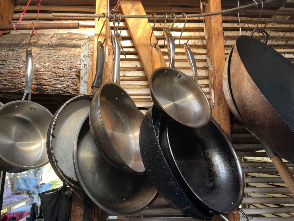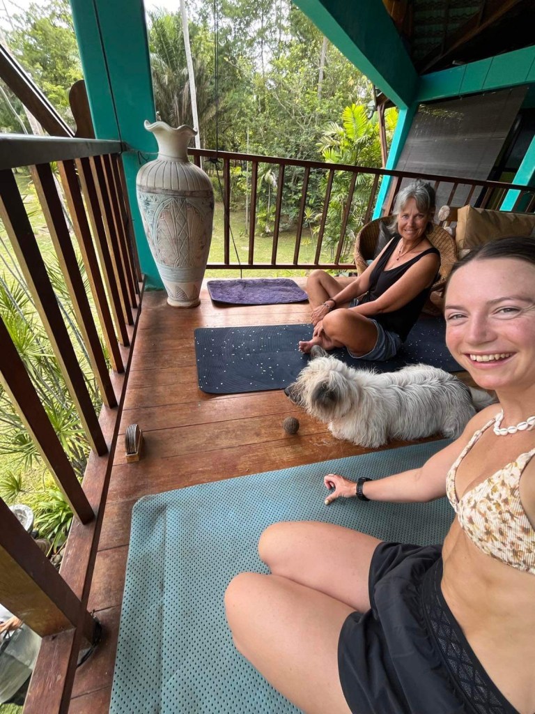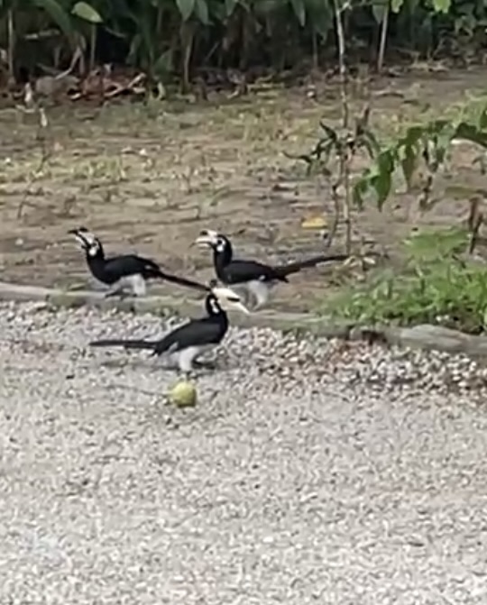 There are monkeys in the trees out the back but they don’t try to come in because of the dogs. There is so much bird life here, it is like being in David Attenborough documentary. A pack of Hornbills live on the property, they are always flying around or hopping around the base of the palm trees with their white baggy pants on. A couple of pairs of Greater Racket-tailed Drongs are nesting in the coconut palm, we see them foraging on the tree trunk, eating bugs with their flag-like tail feathers swishing around. It is so amazing, so much nature all around us.
