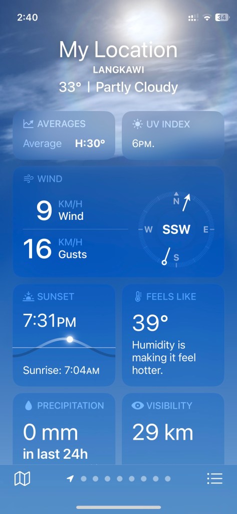 So, Chris is booked for Sunday night 1800 take off, Auckland to Langkawi. A few weeks before, he received an email – your flight has been retimed. What’s this new word we keep hearing – retimed?? Hmmmm, is that to make it not sound so problematic? Anyway, his flight is “retimed” to 0630 Monday morning. Really? That means getting to the airport at 0330!! NOT our favourite thing to be doing.