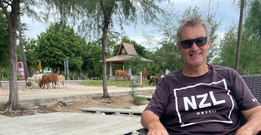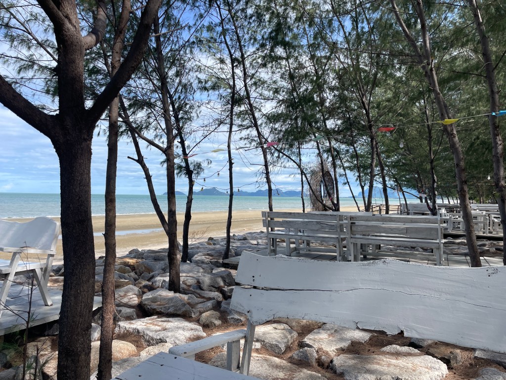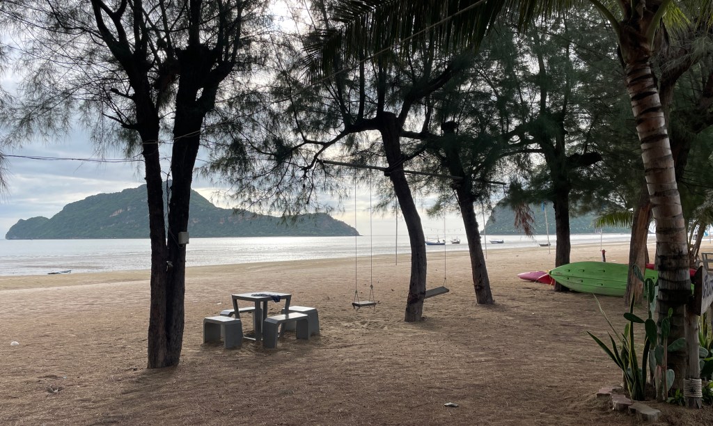 It was incredibly hot for the first few weeks, and then the rain started. At last, some relief from the heat. We manage to fill our days with dog walks and food hunting. I joined a group and did yoga a couple of times a week and played cards and board games once a week. We try all the local restaurants and marvel at the price of some of the menus. You can eat incredibly cheap here if you stick to the local places. $3 for two, flat rice noodles with chicken, Pad Thai, including soup. And so tasty! We love it how they take your order and start chopping, bit of this and a bit of that and within a very short time you have the most delicious meal in front of you.