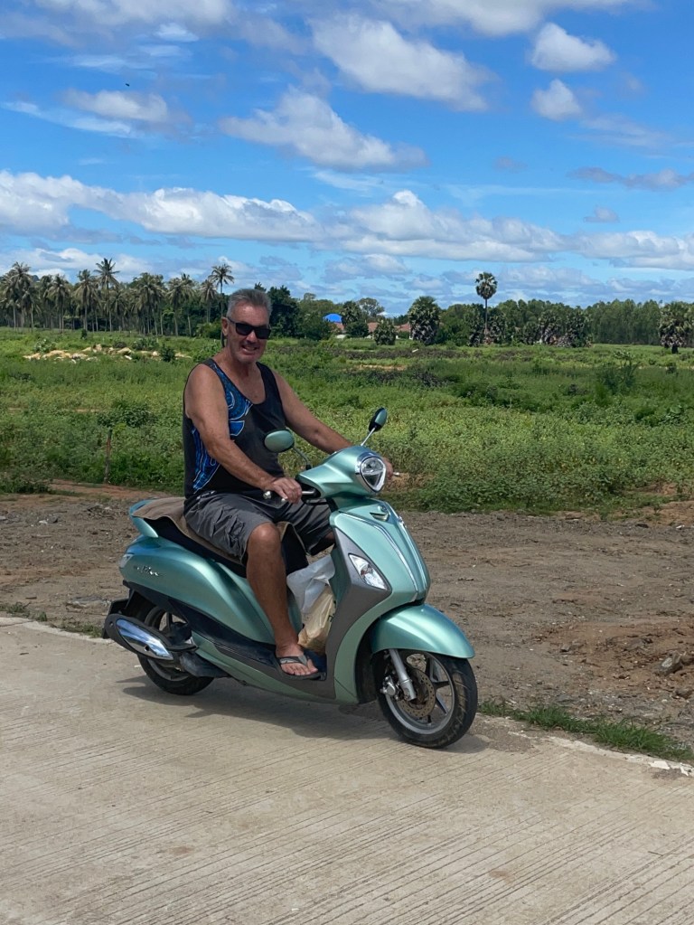 Our friend Cristina very kindly has now lent us her motorbike. This is more like it! BUT… First time out – guess what! Flat tyre – Yes, it is true! We had been at the Wyndham resort to celebrate my birthday. On the way there we were thinking that the tyre felt a little soft going over the bumps – but with 2 large Kiwis onboard……. what did we expect! One completely new tyre later, we start to wonder what it is with us – 6 wheels and 6 punctures, not bad odds! Thankfully that was the last of the flat tyres.