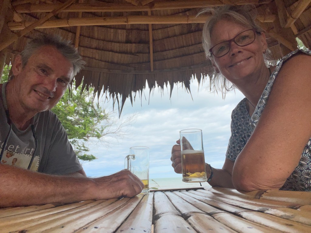 One of our favourite things is to go down to the beach about 4pm, have a couple of large Leo’s sitting in the bamboo salas, watch and listen to the ocean, order some ridiculously cheap food, and just enjoy our surroundings. This is what it is all about!