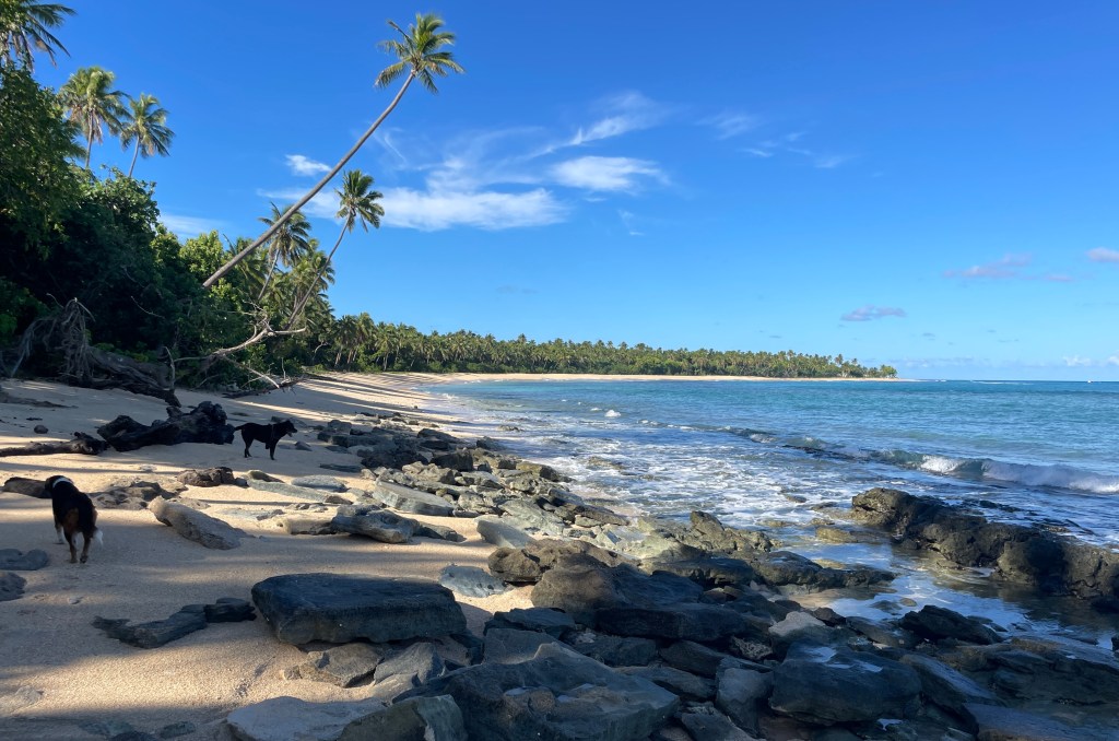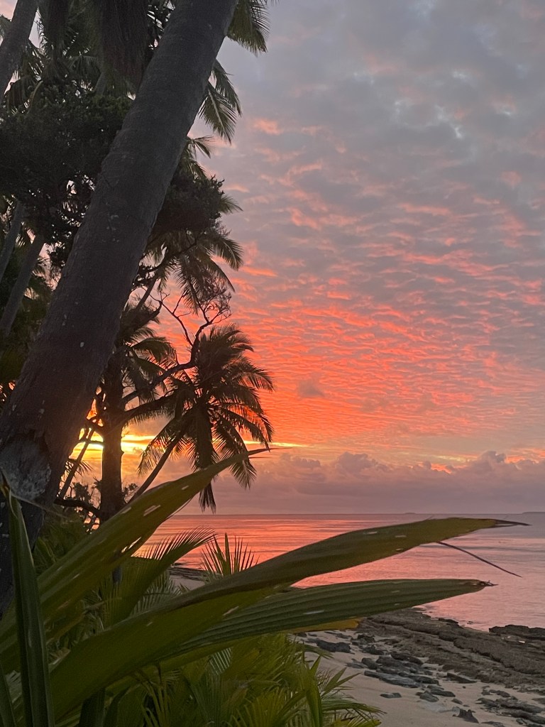 This is Uoleva, smack bang in the middle of nowhere! Actually not nowhere, the Kingdom of Tonga, in the South Pacific. 19°50.5’S 174°23.65’W to be exact! A 4 X 1 km (at the widest point) island of sand and coconut trees, running almost North-South. There is almost no one else around. We are looking after 1 of 4 small resorts on the island and besides the resort owners, staff and guests, Uoleva is uninhabited. No roads, no infrastructure. Access is by boat only and completely off grid. We are in the rainy season now and all businesses are closed, there are no guests, and the owners and staff have, mostly, left the island. So, we really are on our “todd”