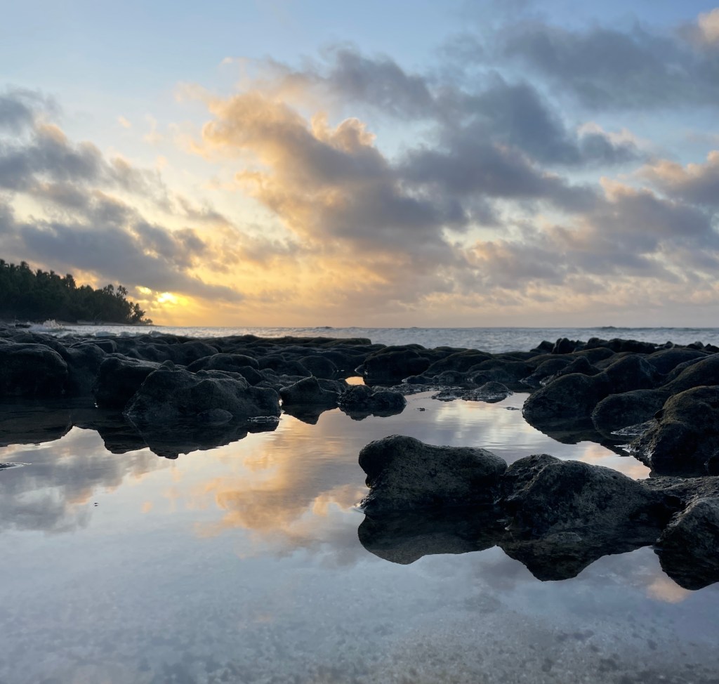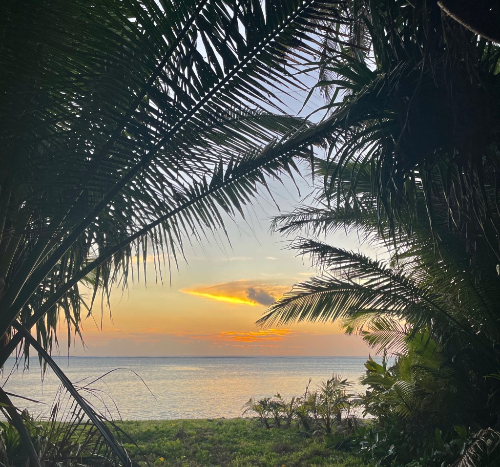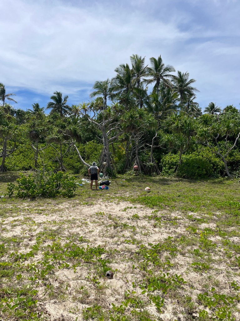 It is so untouched out here, there is time to stop watch and listen to nature. I have been surprised at the lack of flowers. We only seem to have a hibiscus type of flower and we only see them once they have fallen from the tree. Maybe it is the time of the year? It is so green though, lush greenery everywhere. The sound of the ocean is ever present, waves crashing on the reef. Sometimes when the wind is blowing the right way, we can hear the crash of the waves landing on the outer reef beyond the lagoon on the other side of the island. Occasionally we hear a boom of the under water caves as they fill and empty with ocean surges.