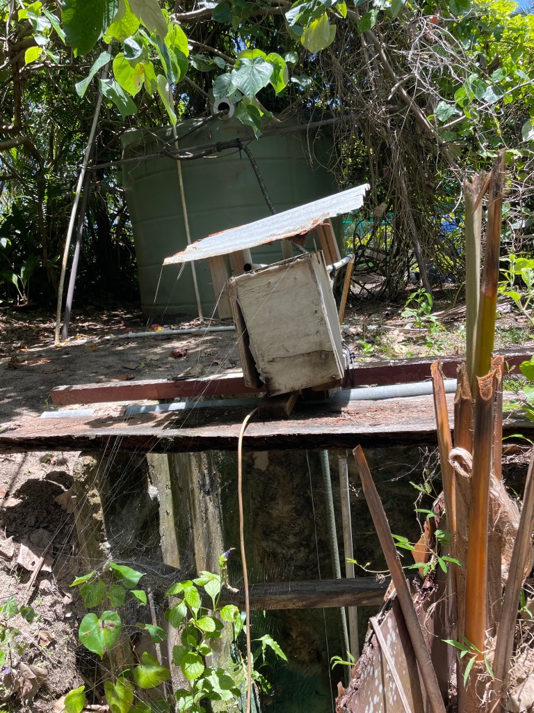 Along with plenty of sunshine, there is also plenty of rain, particularly at this time of the year. Rain fills the freshwater tanks from the runoff from the roofs, this is our drinking water, and the well water is pumped into other tanks for everything else. The well water is mostly fresh water, but there is an element of sea water mixed in there. So, there is always a saltiness to the well water, we are getting used to showering and washing dishes in salty water. There is enough water to furnish 12 guests plus staff in the season, so I think we “2” will be fine for water. And there are spare pumps, just in case!