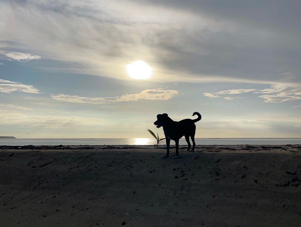 Jenga loves the morning walks, he has a fascination with the bait fish and the little black tip sharks. Poor old boy, he is getting a bit hard of seeing. He can’t always see them, but he knows there is something there. He runs along, barks, and splashes in the water, forever hopeful. He loves it, enjoying just being out there doing it. He has never caught anything yet but apparently he can.