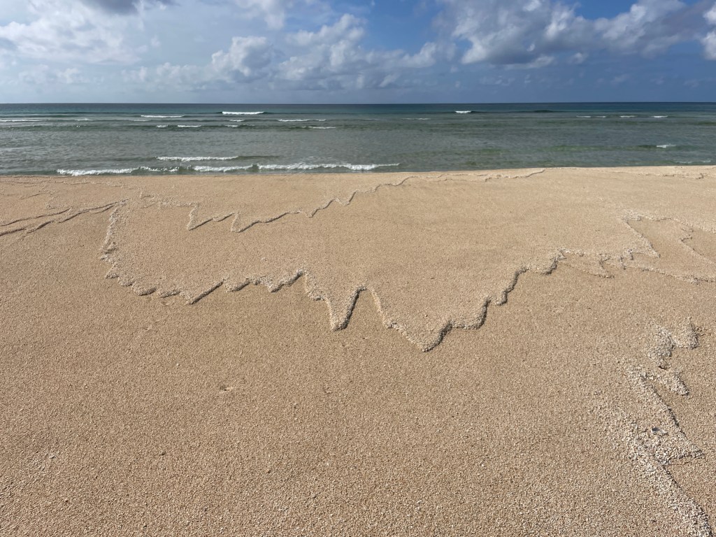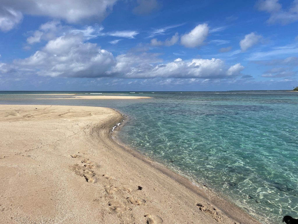 At the end of the island there is a sand spit. At low tide it reaches, or has the potential to reach half way across the gap between us and Lifuka, the next island up. It has changed dramatically in the 3 months we have been here. Our home owners call it the magic sands. The spit used to go straight out. For a while, it went out towards the north. Now, it heads out to the east. It has completely changed sides. The colours and the patterns that come from this ever changing environment is incredible. Nature, what she can do and the power of the ocean is just beautiful.
