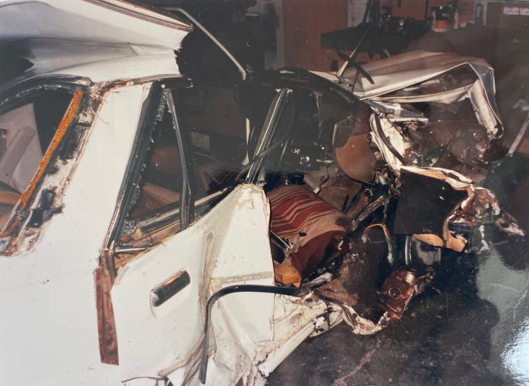 The steering wheel was close to my face so I could just lean my head forward and have a little rest on the wheel. I was holding my right elbow with my left hand, just like casually folding my arms, but I could feel the graunch and grind if I tried to move. But I felt no pain. I may have been medicated, but I can’t remember. My feet were stuck in the foot well. I was completely trapped, I couldn’t move. I got cramp in my foot but by then they were able to open up the gap to relieve the pressure on my feet.