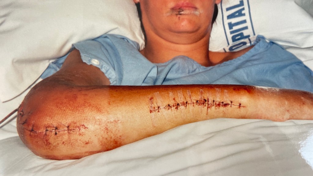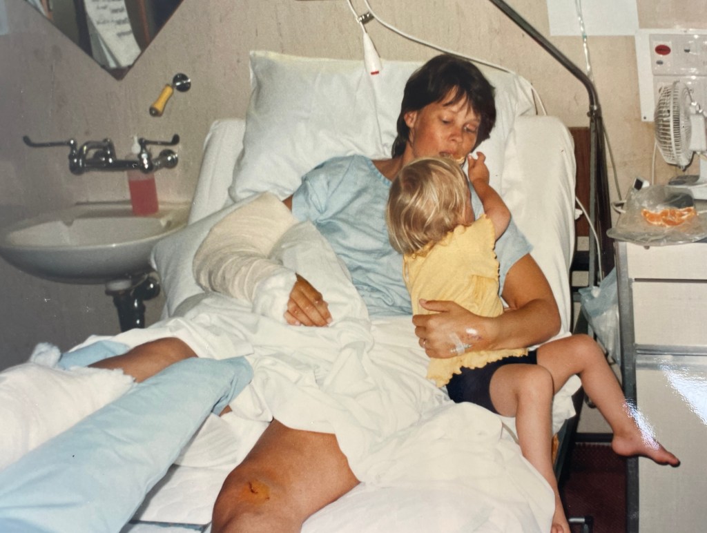 I sustained multiple fractures, some compound. My left pelvis was also fractured. I had deep cuts and bruises—bruises so severe, they’re hard to even describe. An imprint of the window winder was visible in the bruise pattern on my right thigh. After a few weeks a hematoma the size of a rugby ball developed in that spot. It’s hard to believe I didn’t sustain any internal injuries—just lucky, I guess. Since then, I’ve undergone several surgeries to remove various pieces of metal, including plates, screws, and wires. I have a jar full of them, tucked away in a box somewhere.