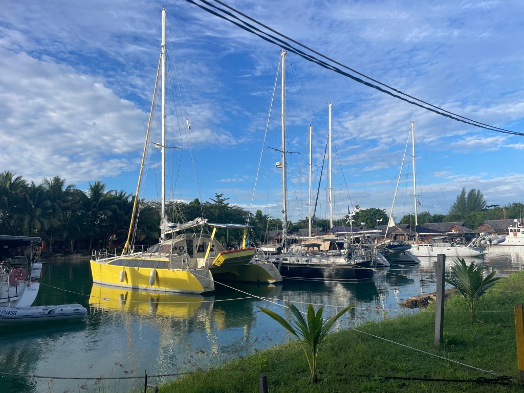 This part was easy, our faithful driver Neddy was waiting for us at Sorong and took us to Tampa Garam Marina where we found Banana Split. This is a small marina with no berths as such. It is a small rectangle of water with 8 vessels tied up in the Mediterranean style mooring system.