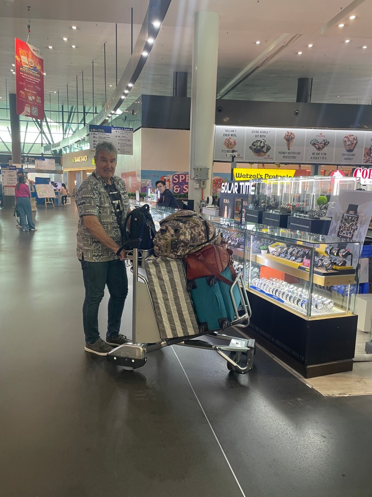 On arrival at KL, I see on the board that my flight has been “retimed” yay I have an extra hour to get through. I go through immigration, (by the way, he didn’t want to know about my onward ticket!!) I make my way to the carousel; my bag is nowhere to be seen. I ask at the lost luggage desk, he says that as I am effectively in transit, then I should have gone to the transit desk air side and my bag would have been there. Oh? I say, dam, missed that memo.