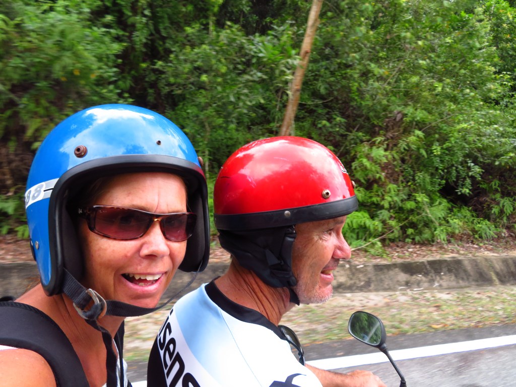 The Island is so beautiful. So green with thick, lush vegetation. If you are not looking at the sea, you are looking at the rugged mountains, so spectacular in their own right. There are mangroves in the estuary’s, caves and picturesque outer islands, rivers, and many waterfalls. We did a boat tour through the mangroves which took us out onto the Andaman Sea, we got to see the island from a different perspective. And, as you know, Donna and Chris are very happy when they are on a boat!