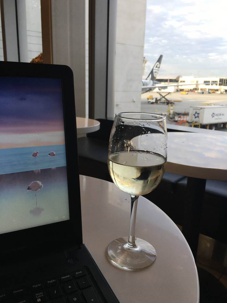 When its only a couple of hours to go we decide to get a glass of wine at the bar near our gate. One of the few still open. Its always expensive to eat/drink at an airport but it is part of the fun and you always do it anyway. I think this has to be the most expensive glass of wine we have ever had at USD$14+tax each! We sat down and within 10 minutes they started packing up the bar. They had just been told they need to close – NOW! So we sat all alone, drinking this (have to admit) delicious wine, I guess we wont be having a second!