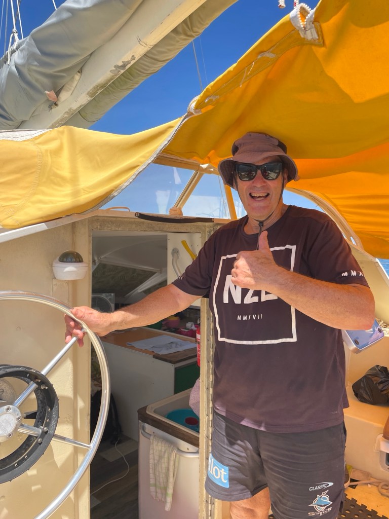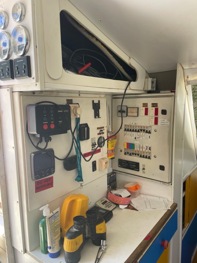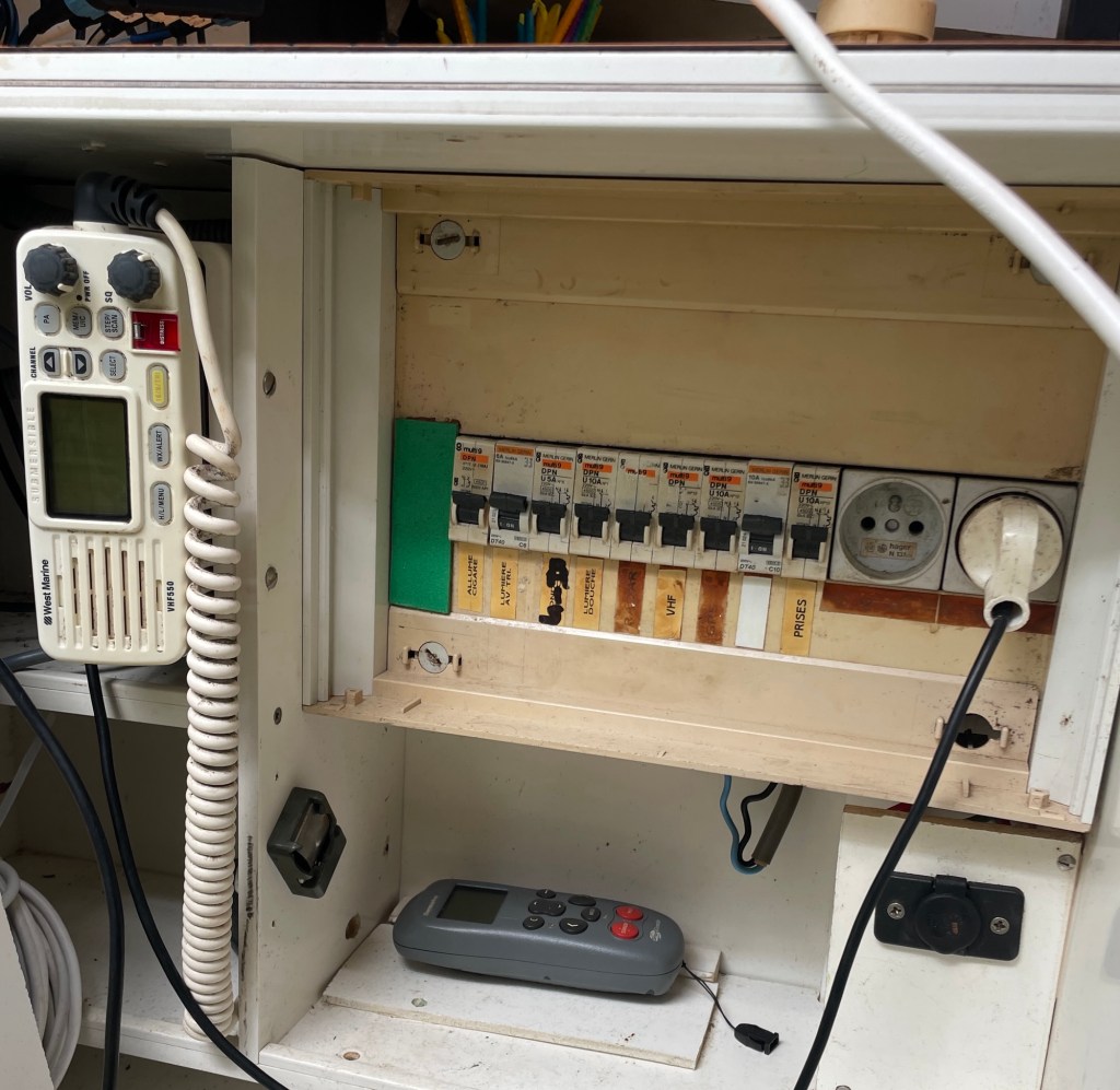 By now it is a decent time in France, so we call and talk to the owner, how do you turn the fridge on? We had already found the fridge motor and all looked ok there, all switches we can see are on, Arnaud is none the wiser. In the end we call the Skipper who delivered Banana Split from Australia, and ask him how did he turn the fridge off? Maybe we could retrace his steps in reverse. So, it turns out that there is a separate switch for the fridge, in a faraway place, all on its own, cunningly disguised as the anchor winch switch. Well, you don’t know if you don’t know!