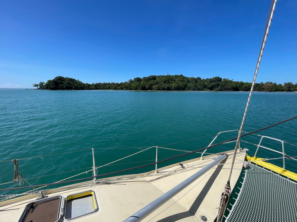 Sunday 0630: We head out on a course for Mansur and Kri. The weather is a bit overcast which is giving us shade and the sea is very calm with light variable winds. Other boaties around have been saying that there has been no wind to speak of, so they have not been getting their sails up. We don’t know our headsail from our genoa anyway and have no intention of trying to undo all the perfectly tied up sails and sheets and whatever-else-they-are-called. We would never be able to get it all back together again as we found it. Like re-folding a map – I guess you have to be a certain age to understand what that is like!! Anyway, we do not feel out of place motoring along with all sails neatly stowed in their rightful places.