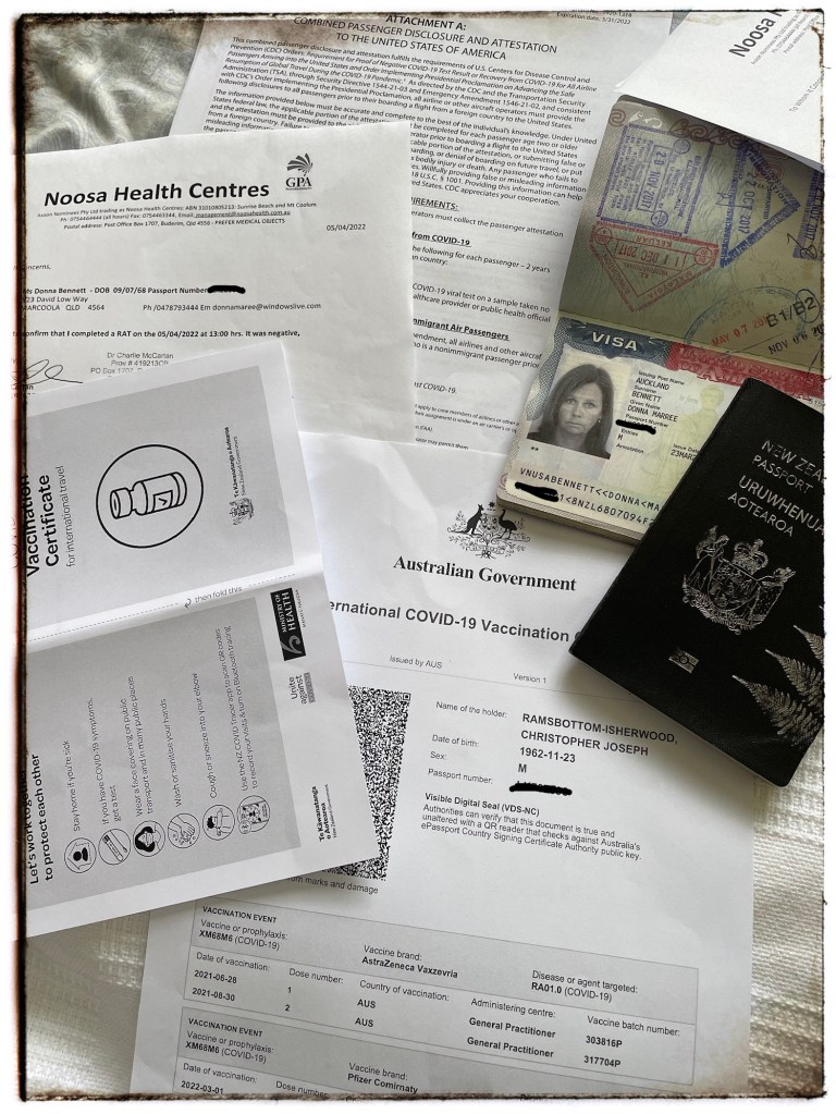 The CDC rescinded the need for COVID testing, pre-flight and on arrival, in June, so we didn’t think to take our vaccination cards. The first thing we were asked to produce – while standing in line, pre-check in – yip! Our COVID vaccination certs! Oh crap! Chris finds a photo of his, I couldn’t find mine! I had a photo of it somewhere in the 1000’s of photos on my phone. Everyone is waiting, scrolling scrolling, getting hot, scrolling, getting hotter, had I deleted it? When had I taken the photo? oh man! Finally, I find it and then we both sign a piece of paper which she files, very carefully(not), in the drawer. Name, signature, todays date – that’s it! not sure what this is going to prove, oh well. Then, when we get up to check in, the check in lady also wants to look at our vaccination certs. But somehow while I was signing the paper, I had deleted the image by mistake. How the *#@ did I do that!! So she called the other lady over and they accept that the cert. has been sighted. We didn’t see that one coming, of all the problems we thought we would have!