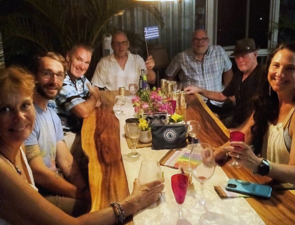 Saturday 1500: We took PugWash to the beach for a swim and a cold beer. While we were there, the crew from the super yacht we’d spotted up at Kri, which had anchored in the bay the night before, came ashore. We got chatting. There were 4 of the usual 6 crew. Canadian, English, French and a Kiwi! (so proud!) Young people living their best life. The skipper was 26 and had been master of this boat for 3 years! The owner had left the boat a few days earlier. We were super impressed with them all, they are out there doing it and absolutely loving their jobs! Well done team!