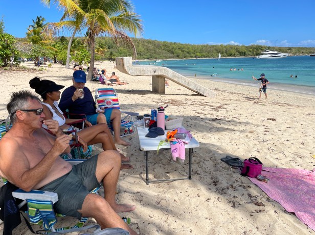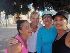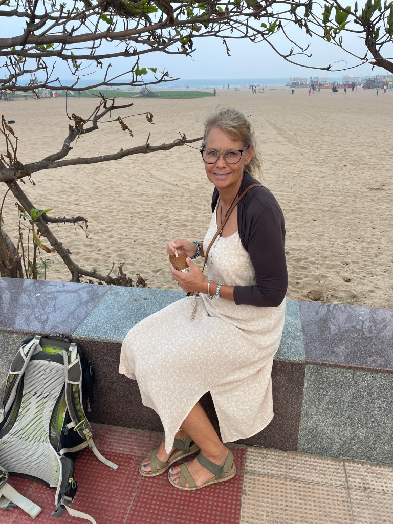 The sun is out, so we have to try – its only 19 degrees and so windy!