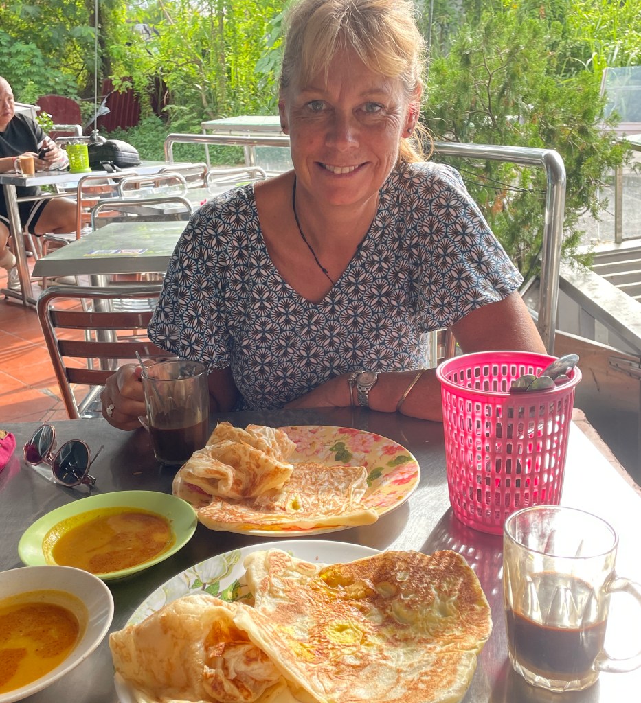 The Garden Café is the buffet restaurant and is the typical buffet style with multiple dishes of many cuisines. They usually have a different theme each night or a specific roasted meat. Rib Eye, pork, lamb, chicken and turkey, its all been pretty good. We are certainly not going without our protein! One night they were advertising “Steamship” as the specialty. We asked, what is this? Beef, they said. Ok lets have a look. Have you ever seen a whole cow leg roasted? Well, that is what Steamship is. We could not believe our eyes at the size of this roasted piece of meat, complete with bone out of the top! 10 hours cooking at 120 deg apparently, and it was delicious.