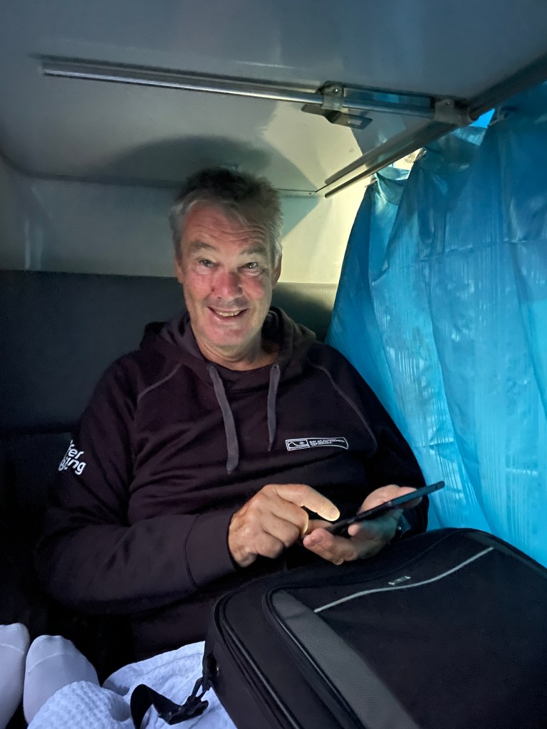0445 I got up and could see the lights of the island in the distance. We stopped just outside the harbour of Ponta Delgarda. It was dark, but you could see the beach not far from us. The captain kept position using the starboard thrusters, the wind was pushing against our port side. The pilot boat approached and came alongside beautifully, and they loaded the poor man from the lower deck in a stretcher. He was waving so I felt happy that he was at least conscious and aware of what was going on, we never did find out what actually happened to him. The Pilot boat left, and we slowly moved off and headed back on our way. The diversion was a welcome change and something quite different. I was fascinated in the while process, having been involved in this sort of operation back in New Zealand. It was great work by all involved, very efficient and professional.