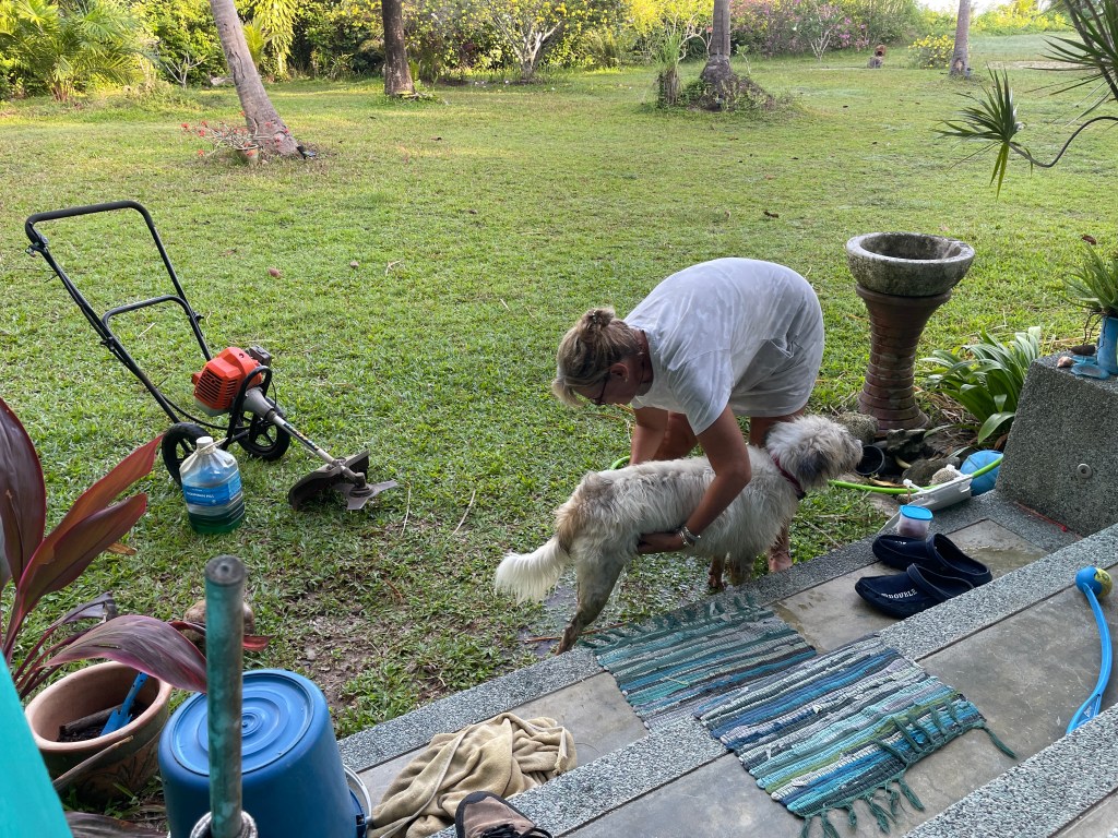Next house sit is back with our dear friend Cristina with all the dogs. We only spend 3 days here this time as she takes a well-deserved weekend off. All the dogs remember us! There are a few new ones, but it takes no time to win their affection. There are a few there who we would dearly love to bring home, but importing dogs from Thailand to NZ is pretty difficult.