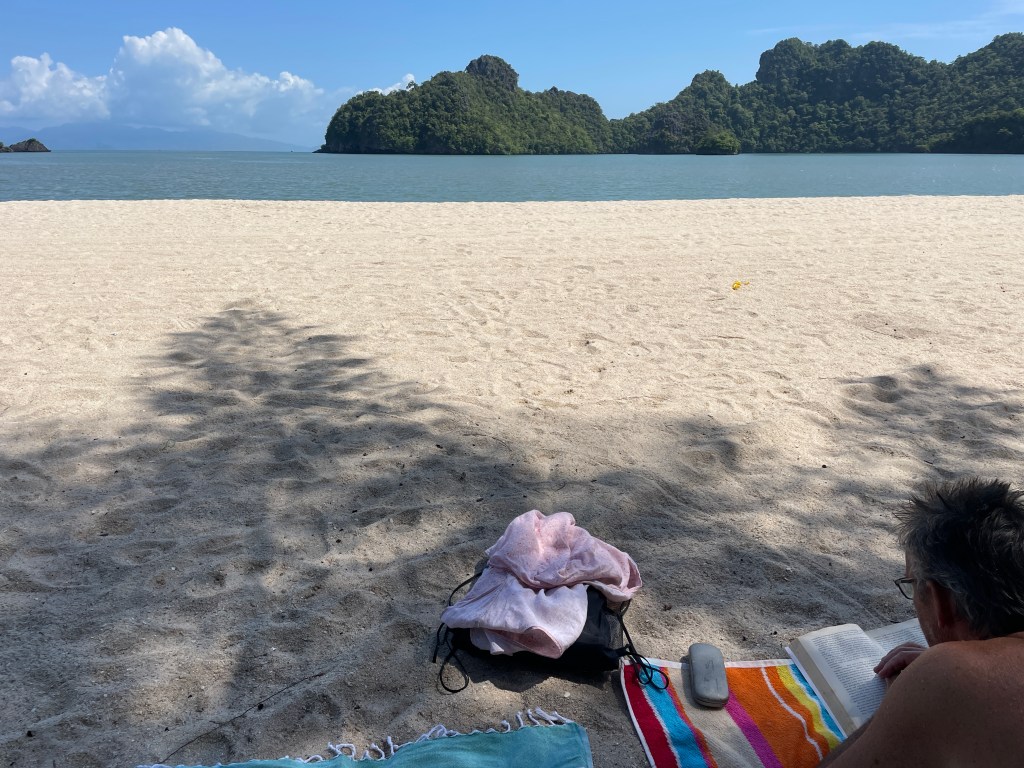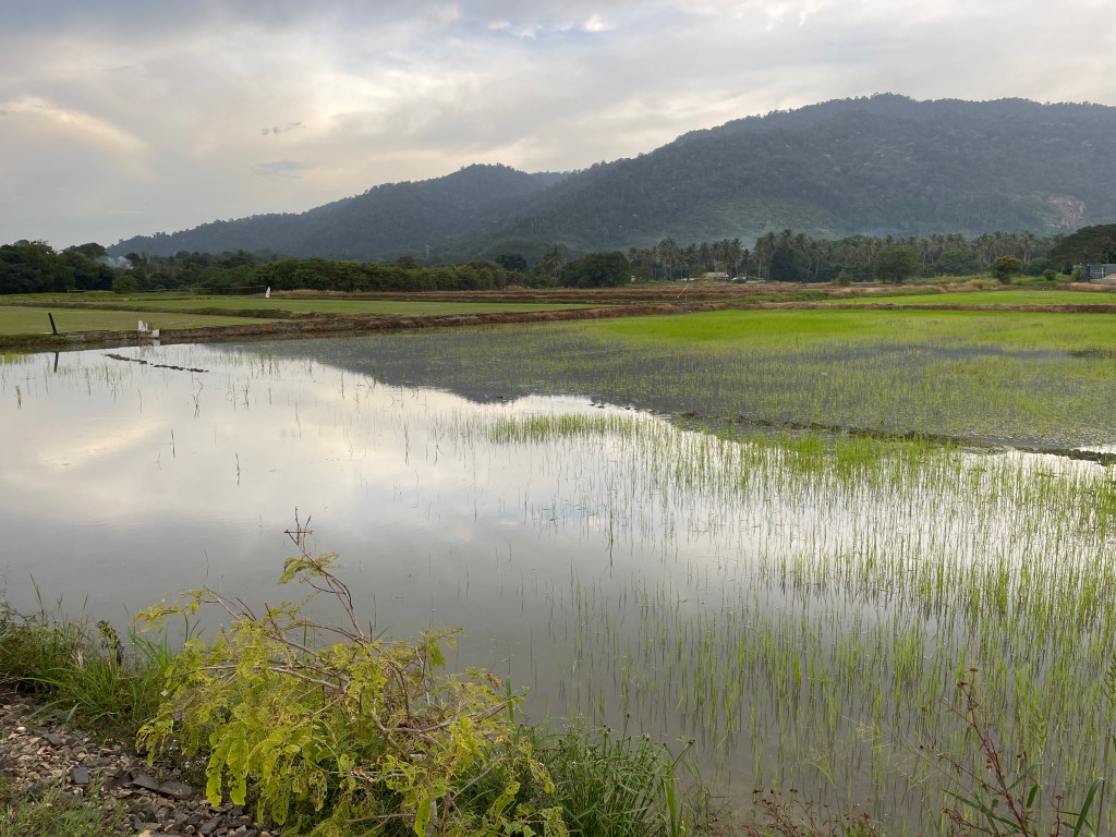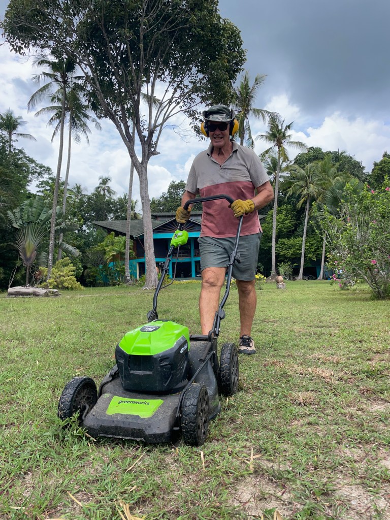 It was incredibly hot for the first few weeks, and then the rain started. At last, some relief from the heat. We manage to fill our days with dog walks and food hunting. I joined a group and did yoga a couple of times a week and played cards and board games once a week. We try all the local restaurants and marvel at the price of some of the menus. You can eat incredibly cheap here if you stick to the local places. $3 for two, flat rice noodles with chicken, Pad Thai, including soup. And so tasty! We love it how they take your order and start chopping, bit of this and a bit of that and within a very short time you have the most delicious meal in front of you.